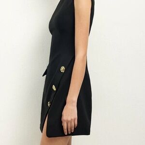 Commense Golden Rose Button Pocket Split Dress Small - Black
