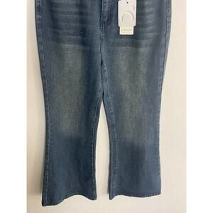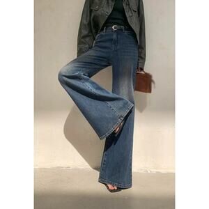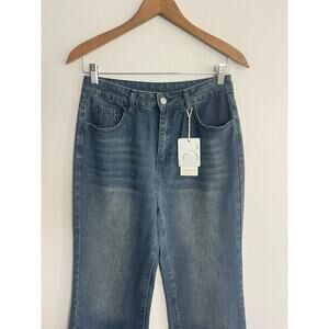 Commense Jeans S High Rise Flare Wide Leg Vintage Washed Stretch Womens NEW
