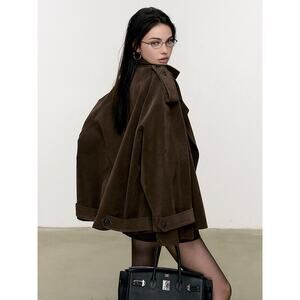 Commense Lapel Loose Suede Jacket - XS - Army Green