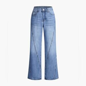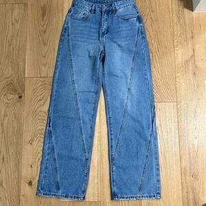 Stylish straight leg jeans. Light blue wash. Perfect for casual wear.