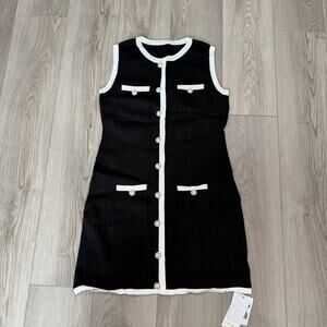Commense Minimalist Elegant Button Sleeveless Short Sweater Old Money Dress M
