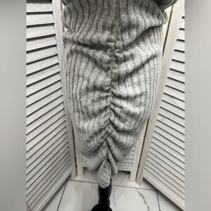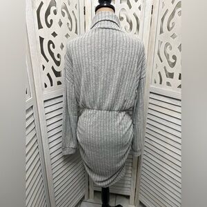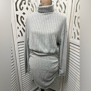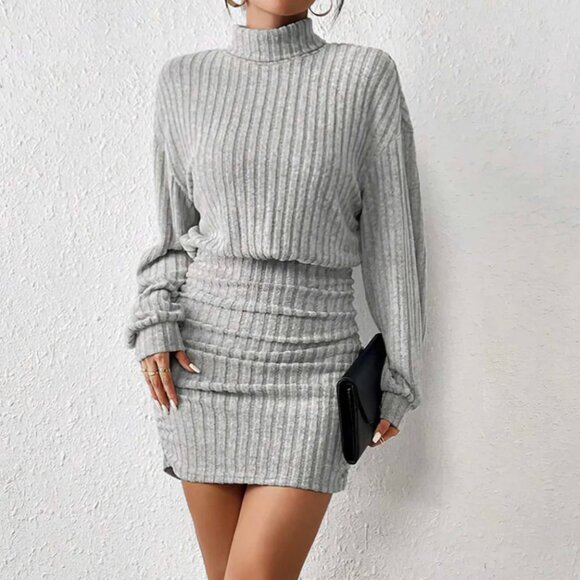 Commense Mock Neck Ribbed Short Dress, ruched sides to pull the dress up and hold as it bunches at the waist.