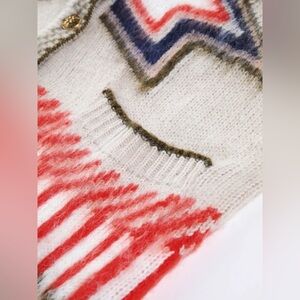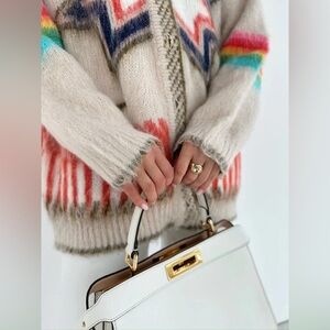 Stylish cardigan with vibrant patterns. Features a mix of colors for a bold look. Perfect for layering.