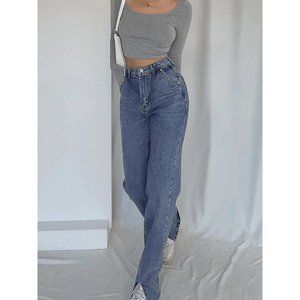 Commense Classic Straight Leg Jeans in Blue size Small. High waisted. Front splits at hems. Zip fly. 4 pocket design. New with tag attached.