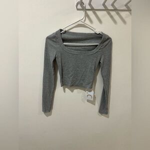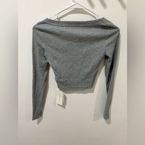 Commense NWT Women Grey Ribbed Knit Long Sleeve Crop Top
