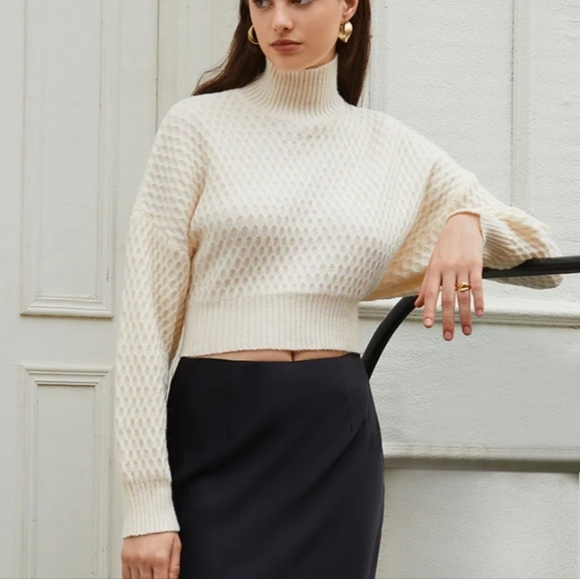 Commense Navy Blue Mock Neck Cropped Open Tie Back Sweater - Size XL