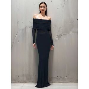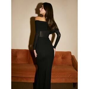 Meet your next go-to statement piece. This Commense maxi combines an off-shoulder mesh bodice with fitted long sleeves and a flowing skirt for a look that’s edgy yet elegant. Has a medium level of stretch. Has a sheer panel just below the bust. Brand-new with tags—perfect for date nights, rooftop cocktails, or any occasion where you want to stand out.