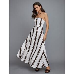 Commense Old Money Striped Strapless Country Club Cream Brown Long Dress M