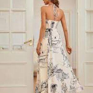 Super cute long halter dress by Commense. Side invisible zipper. Good used condition. See all pictures carefully for wear/condition of item .Size medium.