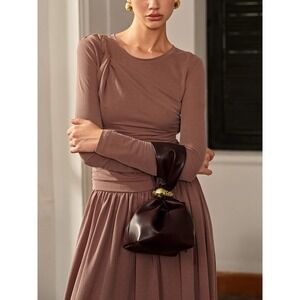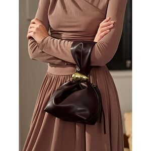 Commense Pouch Oval Ring Unique Handle Gold Ring Accent Drawstring Bucket Bag