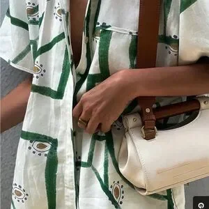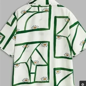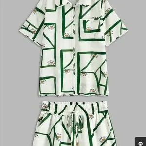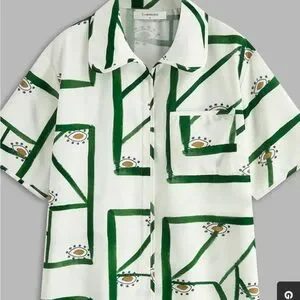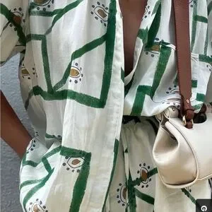 Stylish swim coverup with green and white pattern. Button-up front. Relaxed fit. Perfect for beach days. Composition: 30% Linen, 70% Viscose