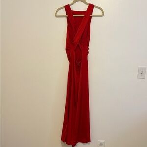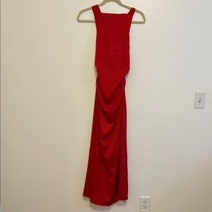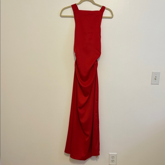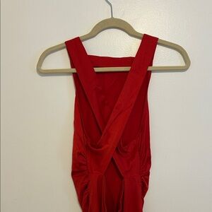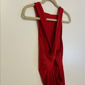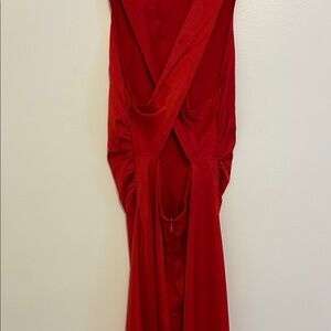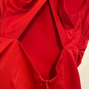 Chic backless design. Vibrant red color. Ideal for evening events.
