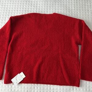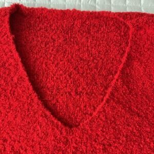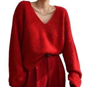 Elegant red V-neck sweater. Soft and cozy material. Perfect for layering.