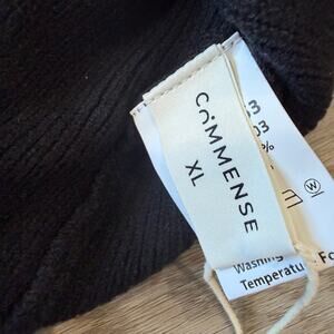 Commense Rhinestone Bow Lettuce Trim Chic Girly Black Stretch Sweater XL