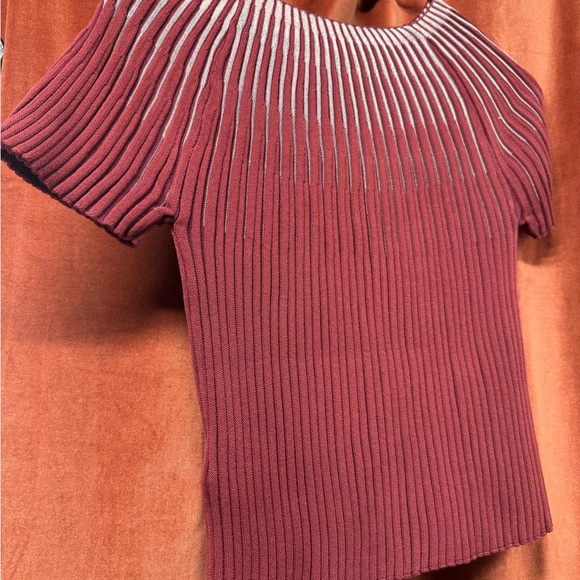 Commense Ribbed Knit Top in Deep Red