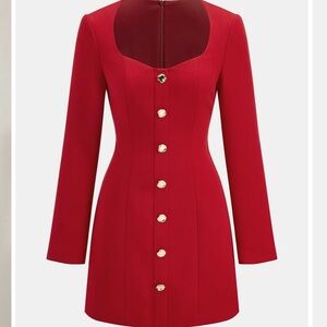 Chic scarlet mini dress with a square neckline. Features elegant button detailing. Ideal for stylish outings.