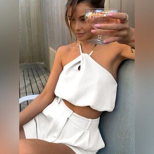 Commense Semi-Sheer Halter Crop Sleeveless Top