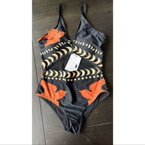 WORN ONCE, tags are off!! Commense - bird print mesh cover up maxi and bodysuit / one piece swim. Size small.