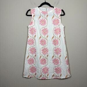 Commense Size XS Mini Shift Dress White Pink Floral Crew Neck Sleeveless Stretch