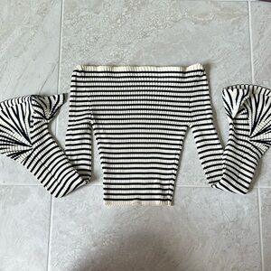 Commense Striped Ruffle-Sleeve Knit Top - perfect condition, the stripes are a dark navy
