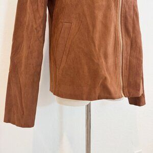 Commense Suede Zip Front Bomber Jacket Minimalist Contemporary Camel Brown XS