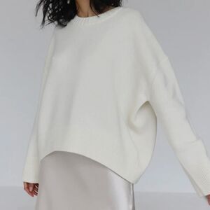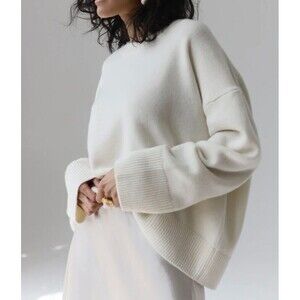 Commense Sweater Womens XS Off White Oversized Pullover Soft Knit