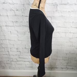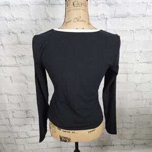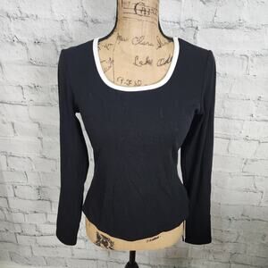 Commense Sweater top Sz L ribbed long sleeve black scoop neck A3