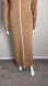 Commense Tan Ribbed Knit Midi Dress Long Sleeve Bodycon White Trim Minimalist S