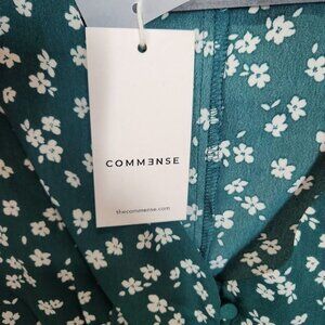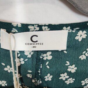 Commense The V-Neck Floral Printed Blouse in Green - Size XS
