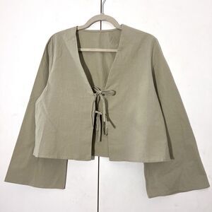 Commense Top Women's M Sage Green Bell Sleeve Tie Front V Neck Whimsigoth