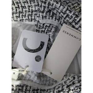 Commense Trousers Women M Black Cream Herringbone Pleats