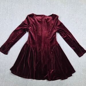 Commense Tunic Mini Dress Womens Size Medium Pleated Panel Velvet Burgandy
