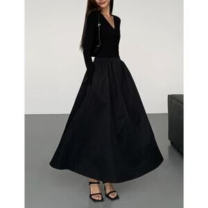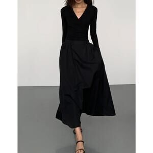 Commense V-Neck Double Pockets Long Sleeve Long Dress black NWT