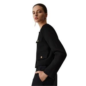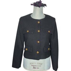 Commense Vintage Button Tweed Jacket Black Blazer with Gold Buttons size XS