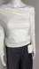 Elegant white long-sleeve top featuring a unique ruched mesh overlay design. This stylish blouse showcases an off-the-shoulder neckline, adding a touch of sophistication to your wardrobe. The fitted long sleeves complement the draped mesh detail, creating a flattering silhouette. Perfect for a night out, a cocktail party, or a special date.