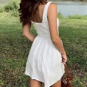 white mini dress. Square neckline. Sleeveless design. Perfect for summer outings. Re poshing it