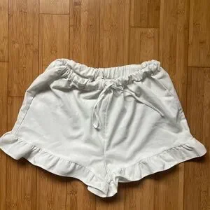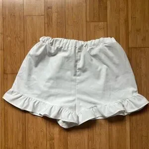 White shorts with a playful ruffle trim. Perfect for everyday style.