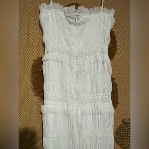 Elegant white dress with ruffle details. Spaghetti straps. Perfect for summer, beach, honeymoon, bridal shower, bachelorette.