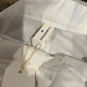 Commense Wide Leg Pleated White Cotton Pants High Waist Pants Size M