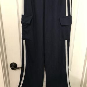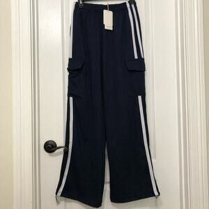 Commense Womens Side Panel Cargo Sweatpants Drawstring Long Pants Navy Large NWT