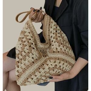 Add a touch of boho charm to your look with this brand new Commense woven straw shoulder bag. Featuring a beautiful hand-crochet inspired design in natural tan and cream tones, this roomy hobo-style tote is perfect for everyday wear, beach days, vacations, or festival outings.