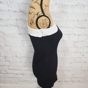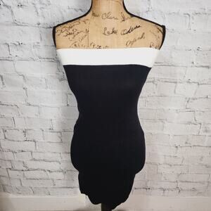 Commense contrast trim bodycon sweater mini dress Sz M black strapless A10