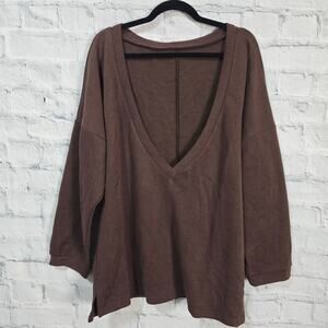 Commense v neck sweater top Sz L oversized long sleeve brown ACL