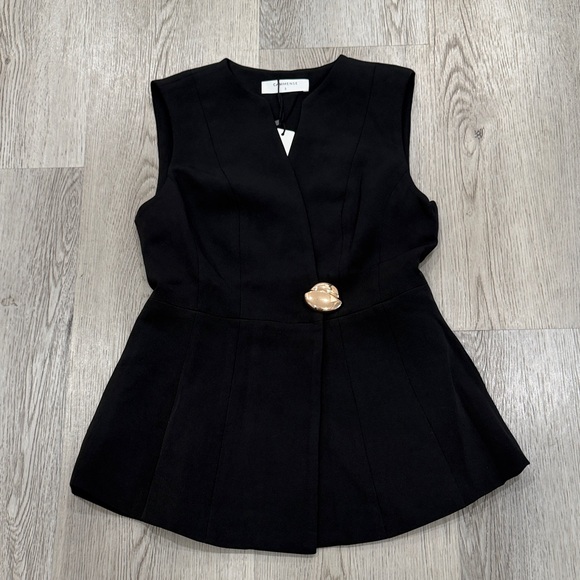 Chic black vest with a stylish gold accent. Ideal for formal events.