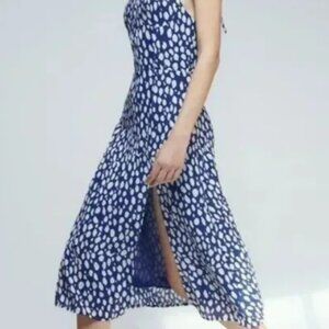 Commense Time Portal Slit Dress Blue Polka Dot Size medium