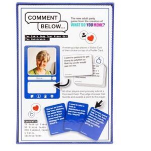 Pair the funniest Comment Card with the Profile and Status Card combo in play each round. Perfect for parties, game nights, holidays, reunions and more.