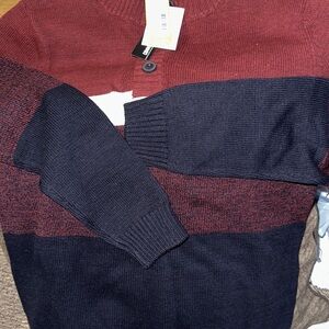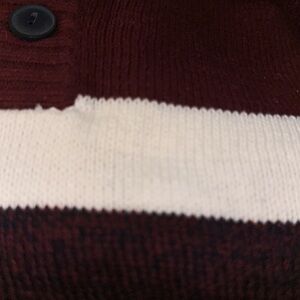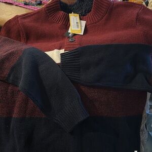 1/4 button down with faux fur on inside of color burgundy navy and cream