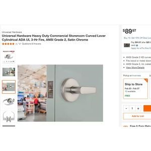 Universal Hardware Heavy Duty Commercial Storeroom Curved Lever Cylindrical ADA UL 3-Hr Fire, ANSI Grade 2, Satin Chrome
