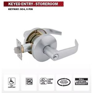 Commercial Keyed Curved Lever Cylindrical UL 3Hr Fire ANSI Grd 2, Satin Chrome