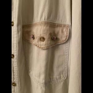 Committed Denim Button Down Shirt W/Roses On Pockets Sz.M